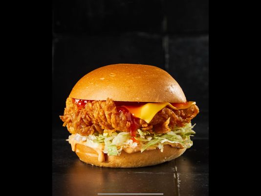 Fried chicken breast, American cheese, lettuce, with house-made chilli mayo, sweet chilli, in a milk bun