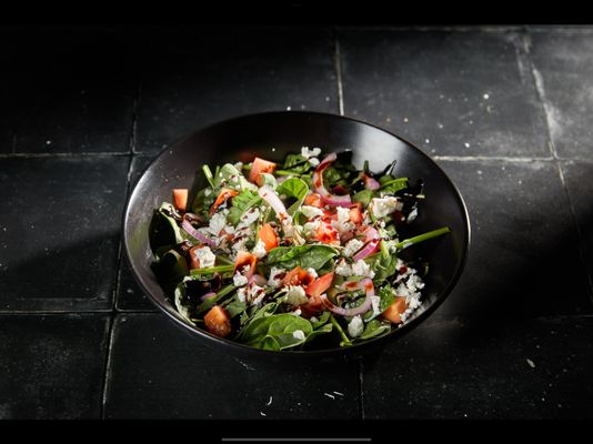 Spinach, tomato, onion, feta, balsamic and olive oil.