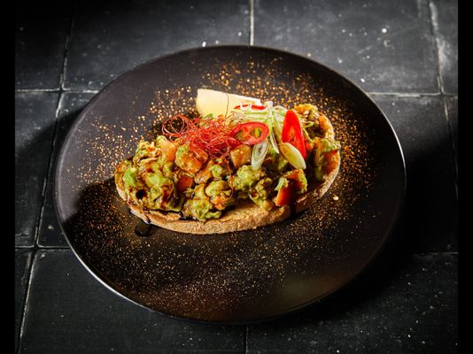 Creamy smashed avocado topped with locally sourced basil-infused tomatoes, served on a perfectly toasted buttered sourdough. Finished with our signature house garnish.