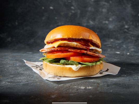 Fresh spinach, tomato, whole egg mayo, homemade Smokey bbq sauce, with smoked bacon, fried egg and Cheddar cheese served on a freshly baked milk bun.