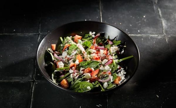 Spinach, tomato, onion, feta, balsamic and olive oil.