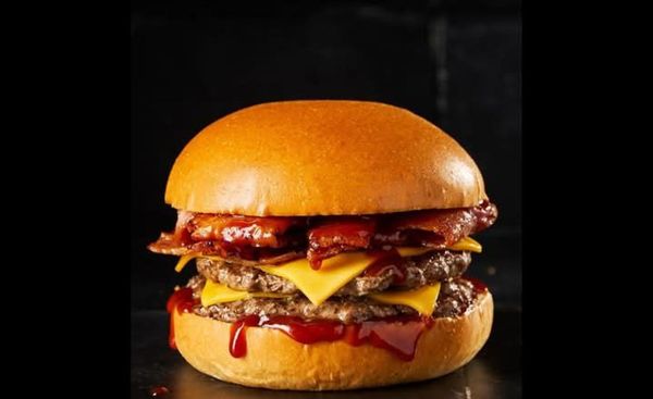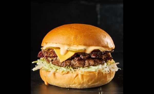 Two grass fed beef patties, smoked bacon, Cheddar cheese served on a freshly baked milk bun.