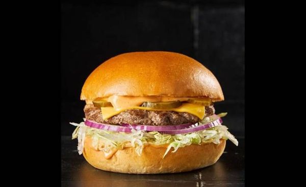 One grass fed beef patty, American cheese, lettuce, onion, pickles, with NYM special sauce, in a milk bun